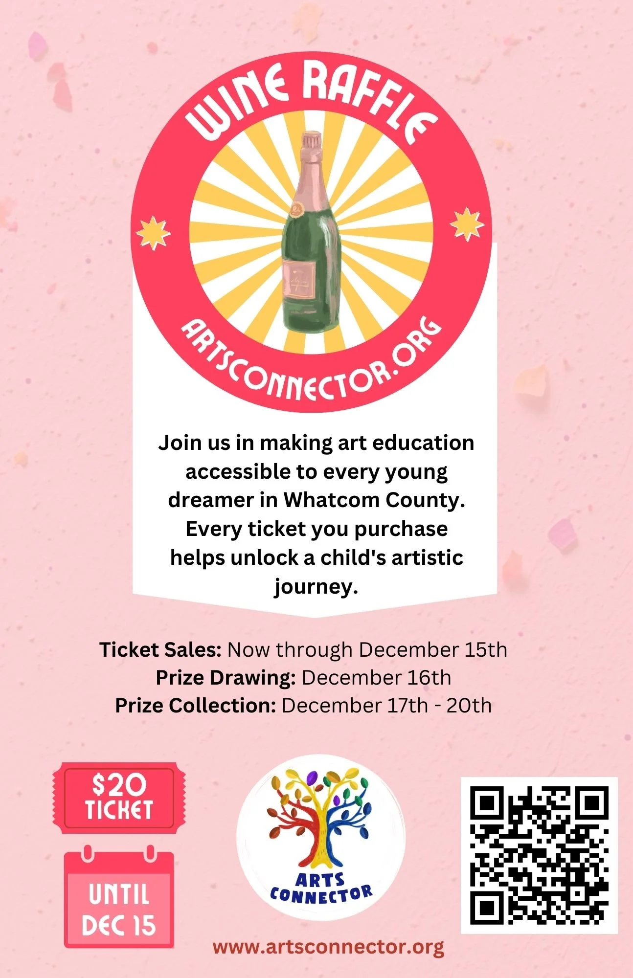 Want to make a difference in a young artist's life while having a chance to win some wonderful wine? The Arts Connector invites you to participate in our special wine raffle, where every ticket helps unlock creative opportunities for children in Whatcom County!